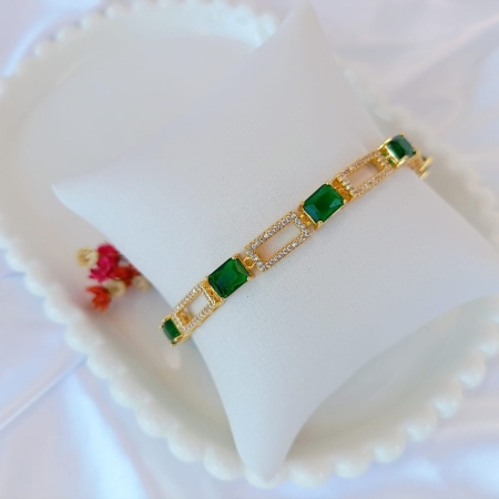 • CHOCKER CARRÊS DELICADO C/ PEDRA VERDE E MICRO ZIRCONIAS EM BANHO DE OURO 18K – CKO-100914X