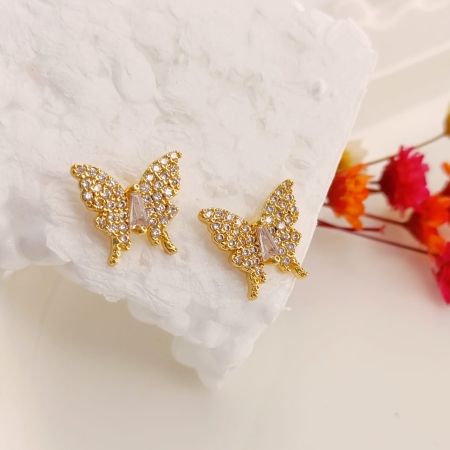 • BRINCO BORBOLETA PEQUENO CRAVEJADO C/ MICRO ZIRCONIA EM BANHO DE OURO 18K – BRO-0062X