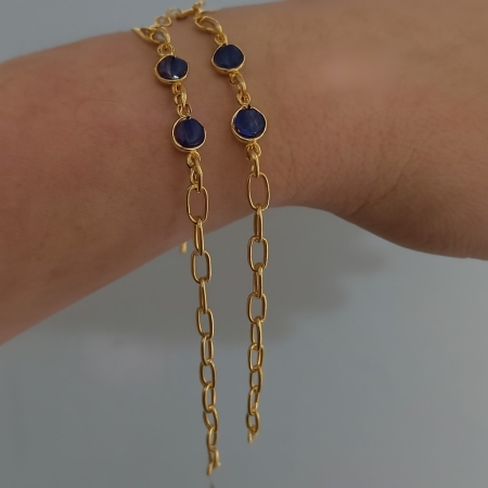 • PULSEIRA CORRENTE COM PEDRA AZUL ROYAL EM BANHO DE OURO 18K- PFO-6014