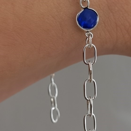 • PULSEIRA CORRENTE COM PEDRA AZUL ROYAL EM BANHO DE PRATA- PFP-6014