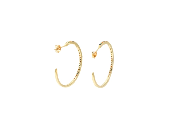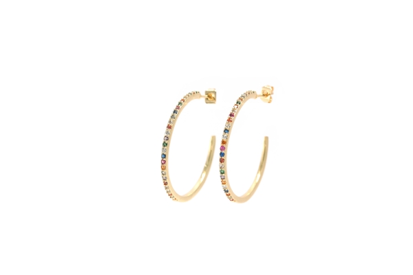 Brinco argola grande cravejado na cor cristal de 3,5cm em banho de ouro 18k antialérgico, garantindo resistência e brilho.