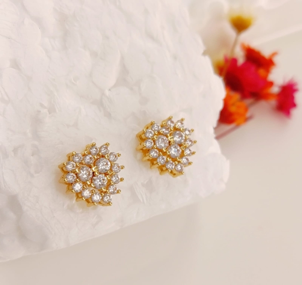 Brinco em formato de coração cravejado com micro zirconias de 10mm em banho de ouro 18k com antialérgico, garantindo resistência e brilho.