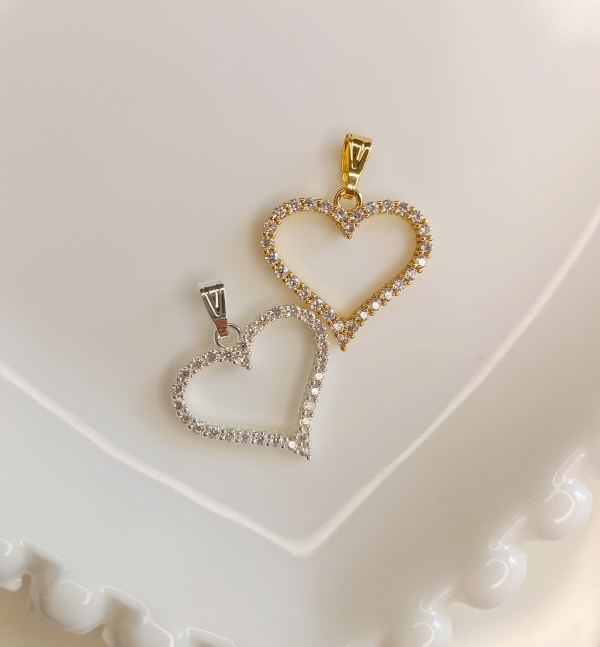Pingente em formato de coração cravejado com micro zirconia em banhado a ouro 18k, hipoalergênico e com 1 ano de garantia do banho, garantindo resistência e um brilho semelhante ao ouro maciço.