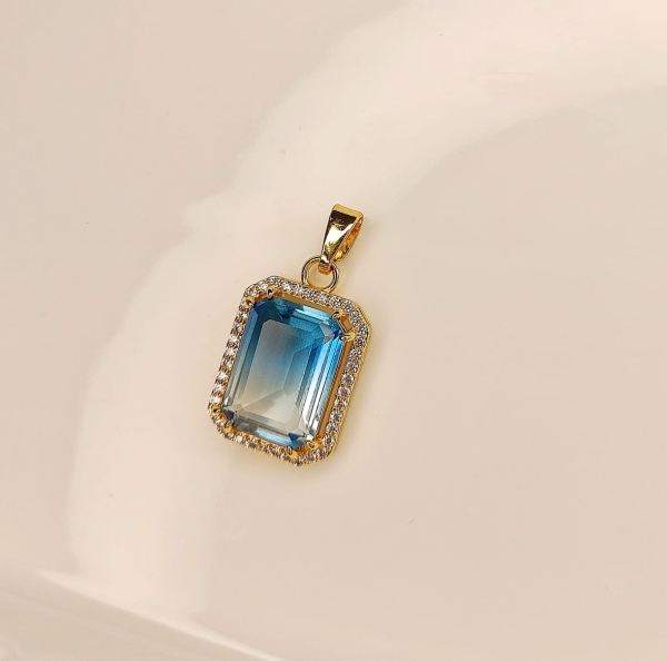 Pingente 2,3cm pedra azul cravejado com micro zirconia em banhado a ouro 18k, hipoalergênico e com 1 ano de garantia do banho, garantindo resistência e um brilho semelhante ao ouro maciço.